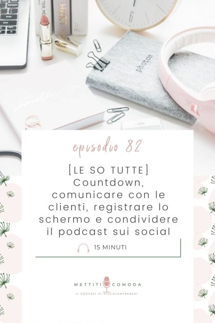 Nuovo episodio di questa serie in cui il mio nato nerd sguazza felice. In questa puntata ti parlo di: Che strumenti usare per registrare lo schermo per i tuoi corsi online. Ti parlo dello strumento che uso io, più alcune alternative gratuite, economiche e semplicissime da usare.Un tool online ... Read More about [LE SO TUTTE] Countdown, comunicare con le clienti, registrare lo schermo e condividere il podcast con un video [MC 82]