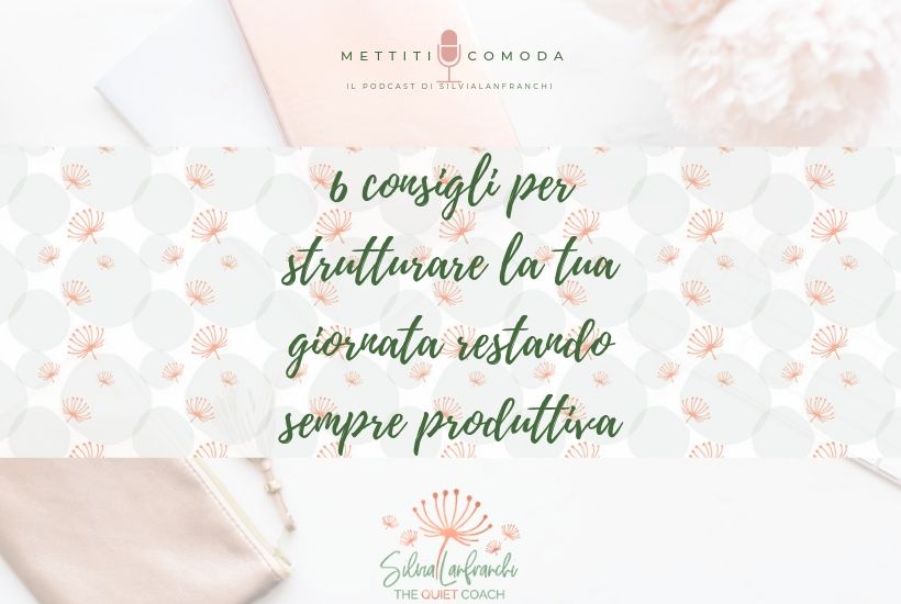 [Ascolta su iTunes, Spotify, Spreaker, Stitcher ] Come si fa ad arrivare a sera felice e soddisfatta di quello che hai portato a termine? Con una buona pianificazione, con tanta concentrazione e con le idee chiare su quello che devi fare giorno per giorno per arrivare ai tuoi ... Read More about Come strutturare la tua giornata per restare sempre produttiva [MC5]
